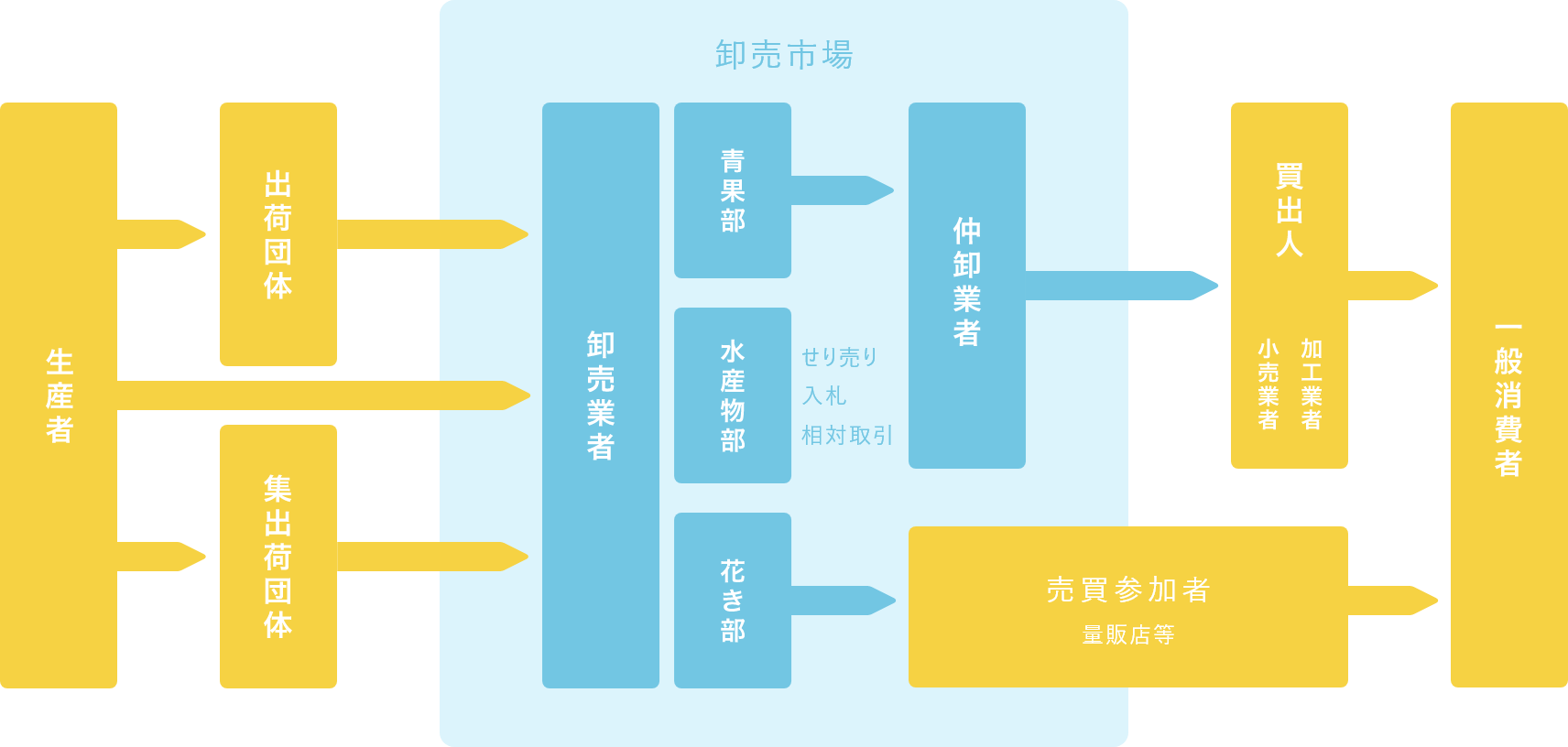 私たちは1967年の開設以来、皆さんの生活に密着した魚や野菜・果物・花きを、適正な価格で安定してお届けするために働いてきました。